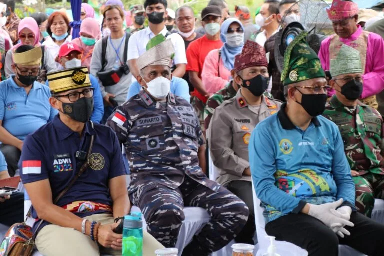 PONTIANAK - Menteri Pariwisata dan Ekonomi Kreatif Indonesia Sandiaga Uno berkunjung ke Desa Wisata Kampung Budaya Benua Melayu Laut (BML) Pontianak, Provinsi Kalimantan Barat, Minggu (31/07/2022).